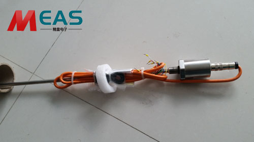 2、在測量過程是由位移傳感器的電子室內產生電流脈沖,該電流脈沖在波導管內傳輸,從而在波導管外產生一個圓周磁場,當該磁場和套在波導管上作為位置變化的活動磁環產生的磁場相交時,由于磁致伸縮的作用,波導管內會產生一個應變機械波脈沖信號,這個應變機械波脈沖信號以固定的聲音速度傳輸,并很快被電子室所檢測到。